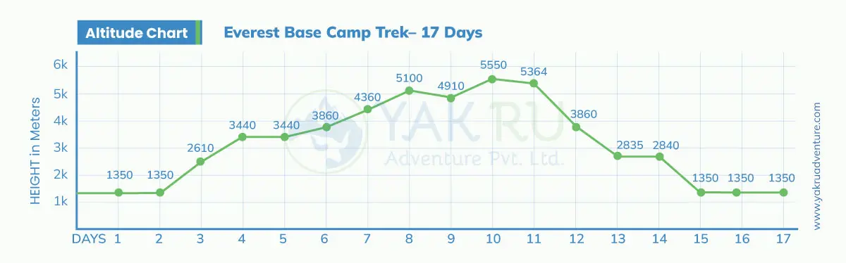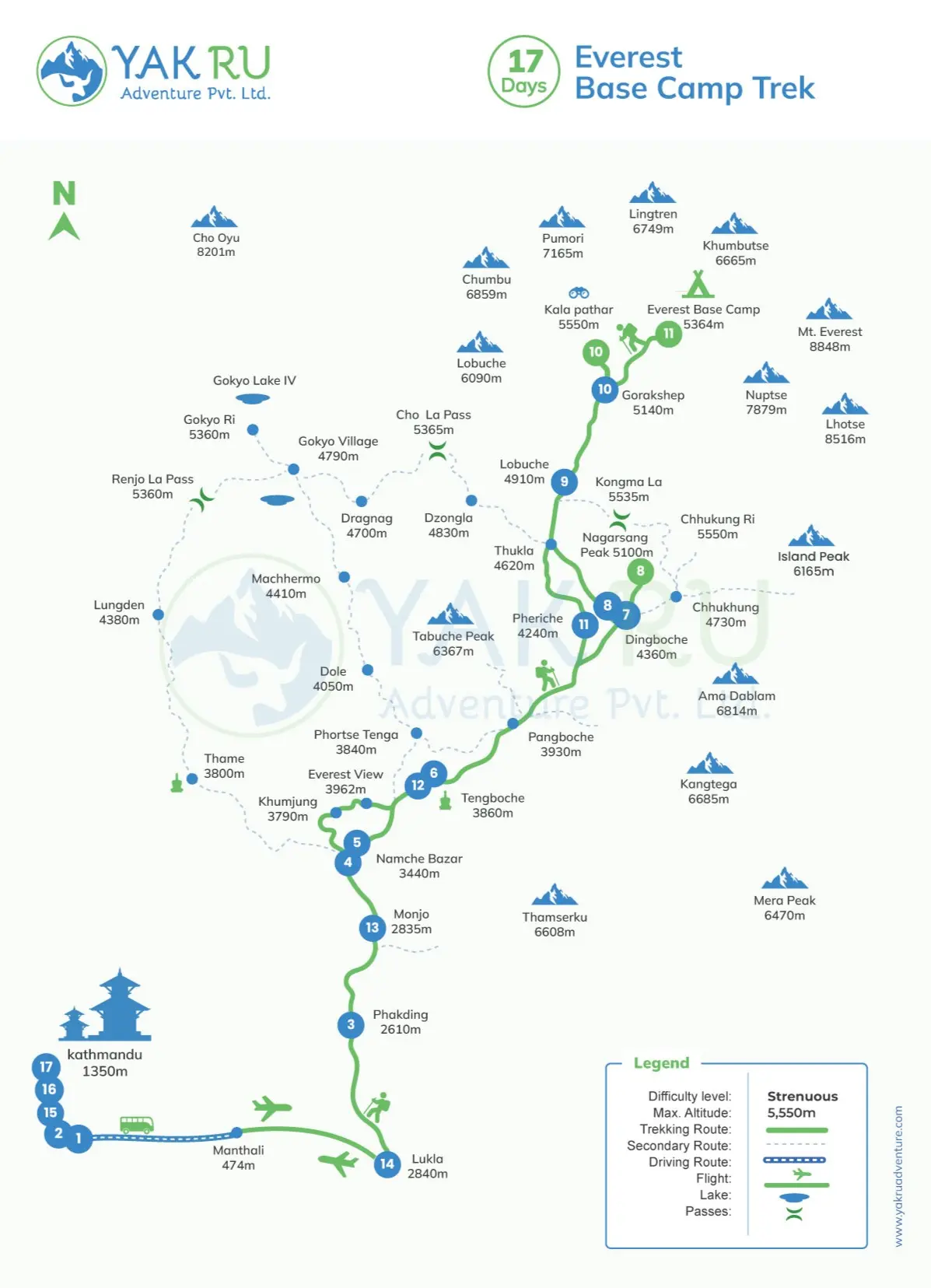 Our 17-day Everest Base Camp Trek starts and ends at the same place, Lukla, which is just a 30-35 mins of breathtaking flight from Kathmandu. If you would like to customize the itinerary according to your desires, physical fitness level, time frame, etc., please feel free to message us. Our experts will help you craft a perfect itinerary that ensures a top-notch experience with safety.