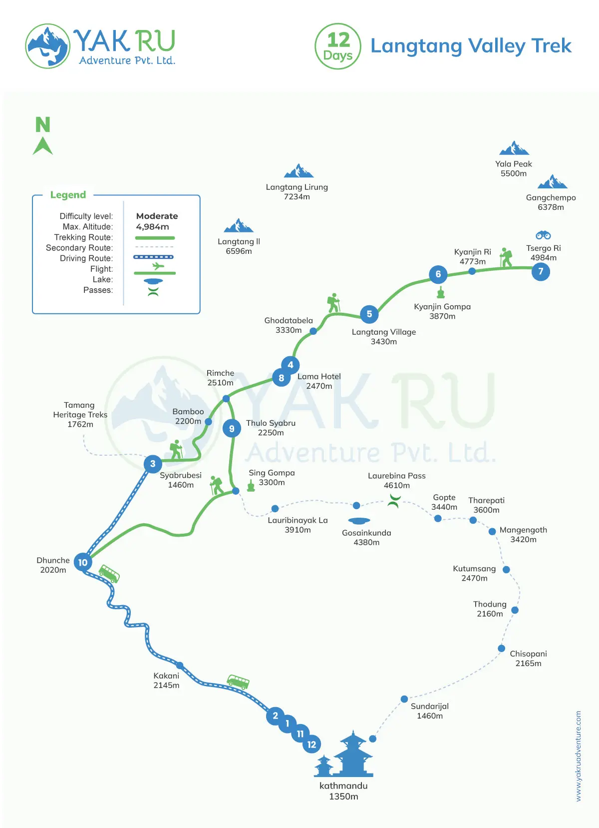 Our 12-day Langtang Valley Trek Itinerary, which includes a 7-day trek, is carefully planned by experts, ensuring safety with the utmost level of experience. And the best thing about our itineraries is that it is fully flexible and customizable according to your preferences.